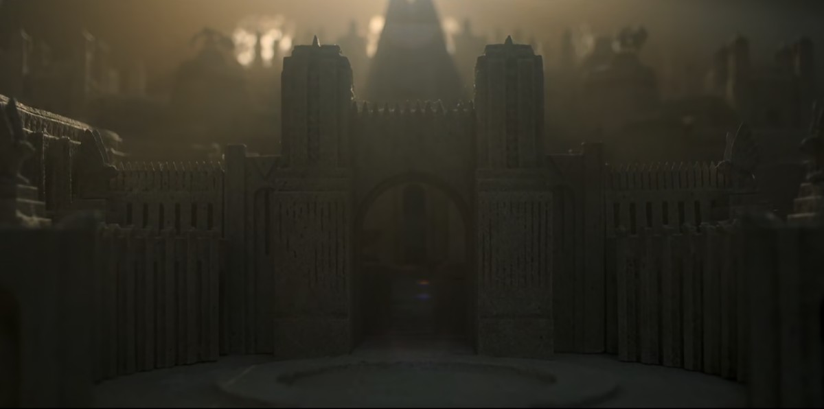 Rhaenyra follows Alicent to the Sept for a heart-to-heart talk. The Sept looks a bit different than it looked in Game of Thrones, because it is not the Great Sept of Baelor yet, which was built by Rhaenyra’s grandson Baelor the Blessed at the same location. While the older sept had 6 pillars, those pillars were replaced by 6 statues in Game of Thrones and also looked a lot grander in the original series. The Hightowers were ardent followers of the faith of the seven. Hence it makes sense for Alicent to take her best friend to the Sept of Baelor, a symbol of faith and hope for her family.