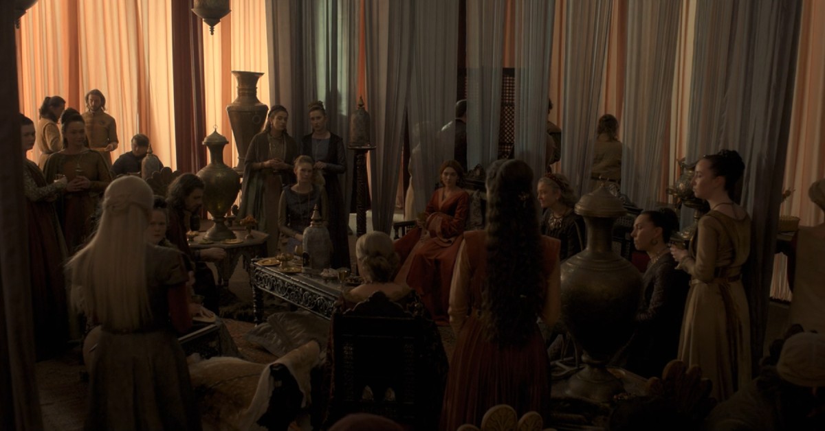 Lady Johanna Swann is namedropped right as Rhaenyra overhears a conversation among the noble ladies at the giant feast before the royal hunt. According to George R. R. Martin’s Fire & Blood, Lady Swann is a 15-year-old captive of Craghas Drahar, the Crabfeeder, who was “sold to a pillow house, where she rose to become the celebrated courtesan known as the Black Swan, and ruler of Lys in all but name.” It would be interesting to see if the character makes an appearance in the show, especially since there isn’t much about her in the books.